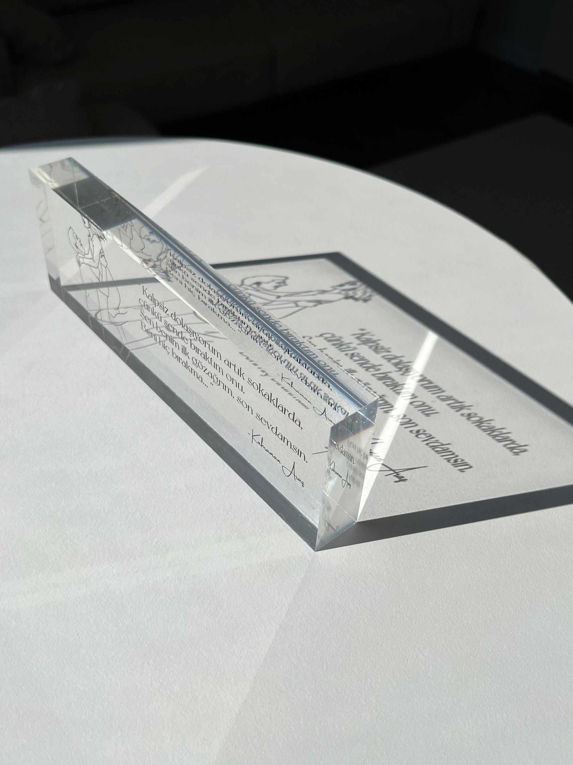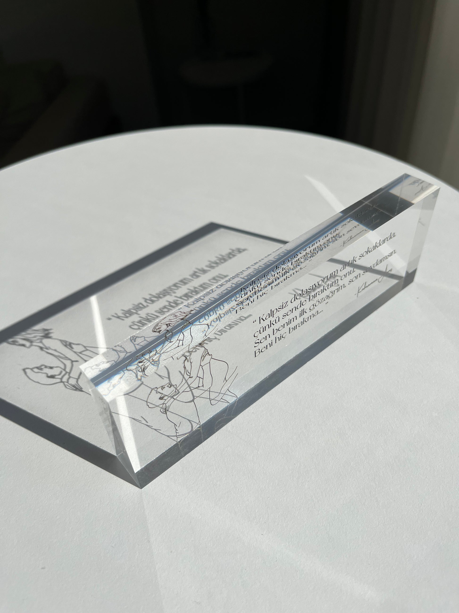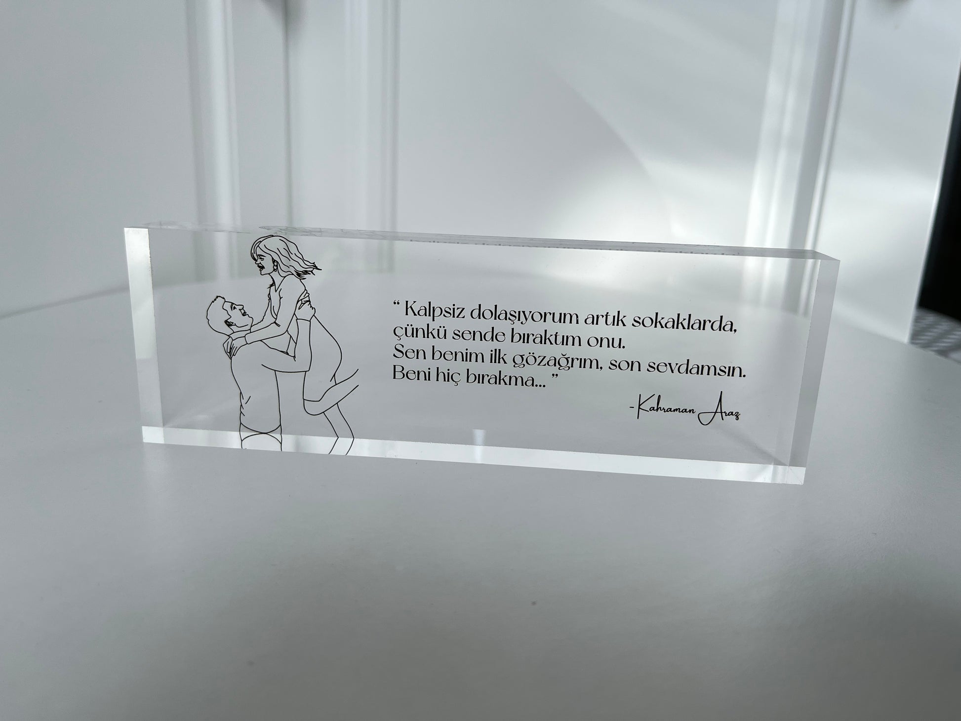 Her bir fotoğraf bir hikaye anlatır, peki ya sizin hikayeniz hangi çizgide? Fotoğraflarınızı tek bir çizgi haline getirip, özel notlarınızla buluşturduğumuz masa plaketimizle anılarınıza benzersiz bir dokunuş ekleyin. UV teknolojisi ile özel olarak tasarlanan plaketimiz, masanızı sadece süslemekle kalmaz, aynı zamanda duygusal bir hikayeye dönüştürür. Şimdi sipariş verin, özel anılarınızı masanıza taşıyın! 🌟🖼️