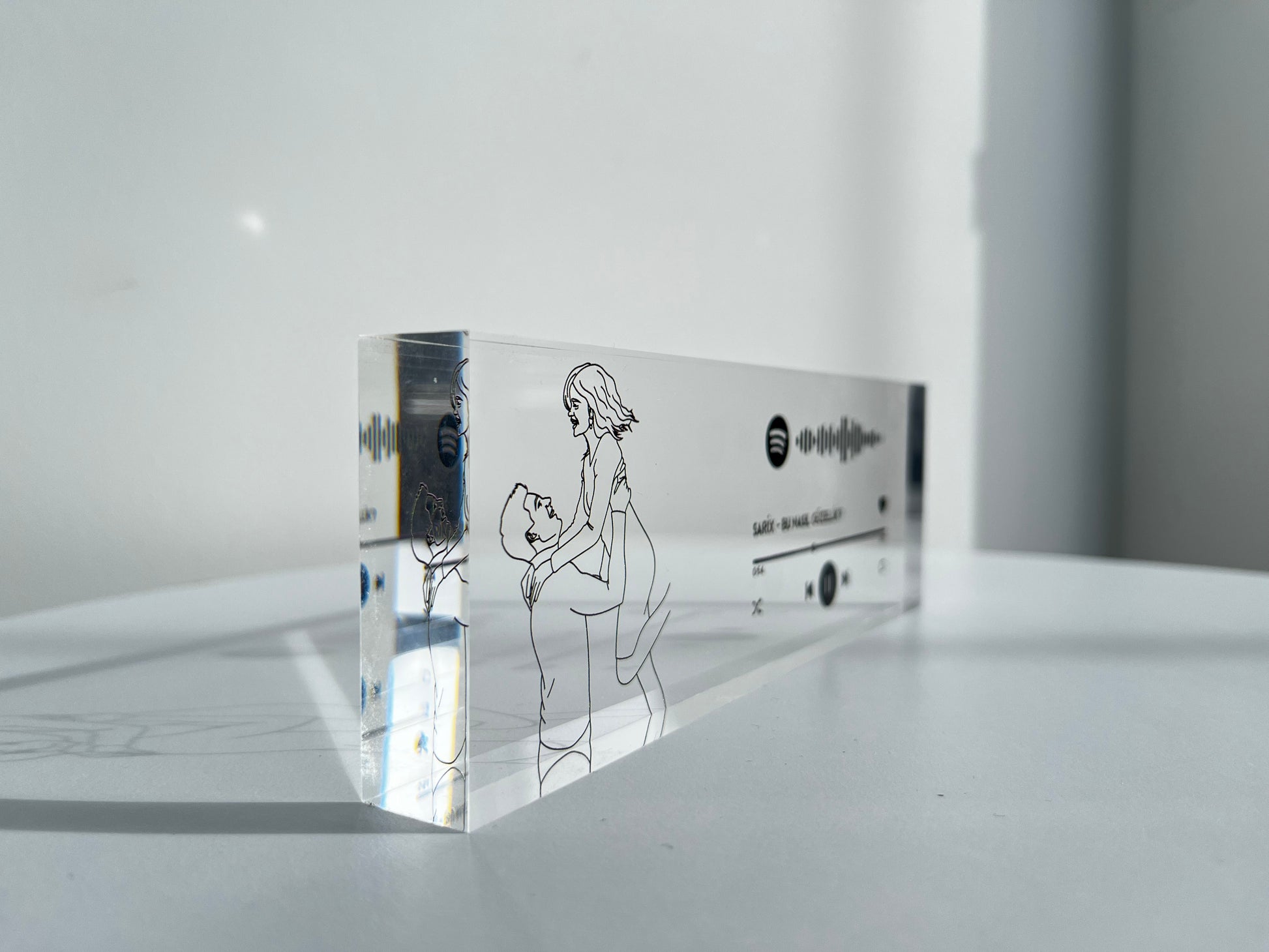 🌟 Her anın sanata dönüşsün! Fotoğrafınızı tek bir çizgiyle ölümsüzleştirdik ve yanına özel bir dokunuş kattık: Spotify şarkı kodu! Bu masa plaketi, sevdiğiniz bir fotoğrafı sanat eserine dönüştürmenin ve aynı zamanda o anı müziğinizle ölümsüzleştirmenin harika bir yolu.