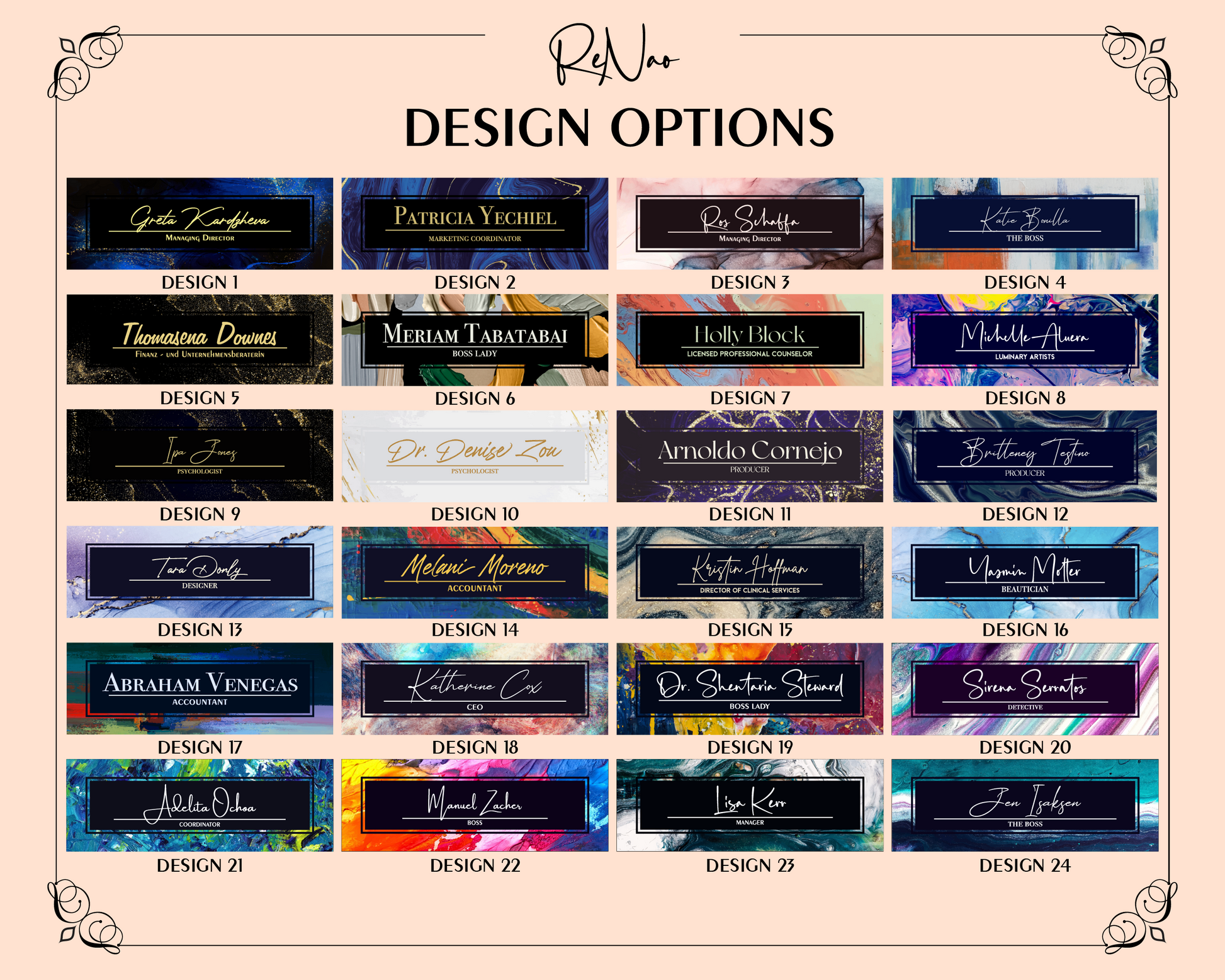İş yerinizin atmosferini kişiselleştirmenin harika bir yolu! İş arkadaşlarınız ve yöneticileriniz için özel olarak tasarlanmış masa isimlikleri ile ofisinize zarafet ve profesyonellik katın. Her isimlik, yüksek kaliteli malzemeler ve özenle seçilmiş tasarımlarla özel olarak üretilmiştir. İş ortamınızı renklendirin ve her anlamda öne çıkın. Şimdi sipariş verin, ofisinizin estetik dokunuşunu güçlendirin! 💼✨